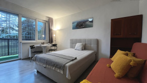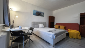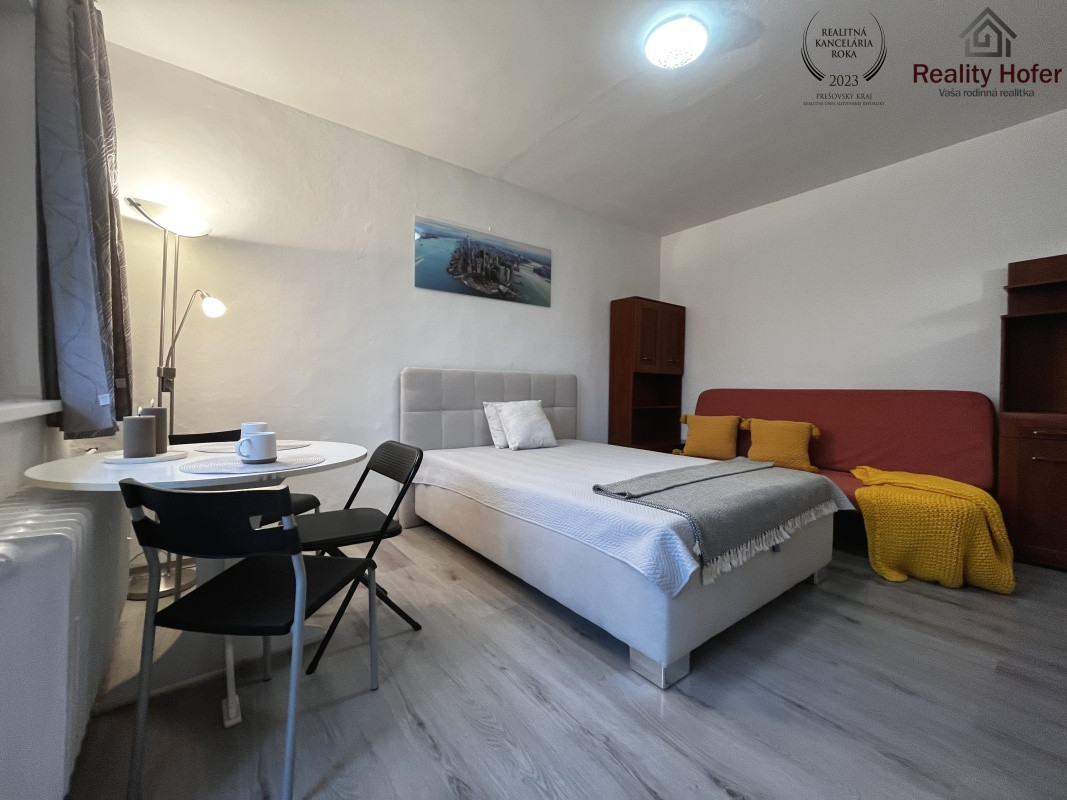 Prenajíma sa kompletne zariadený – posteľ, gauč, skriňa, jedálenský stôl a stoličky, TV, chladnička s mrazničkou, sporák, mikrovlnka, práčka