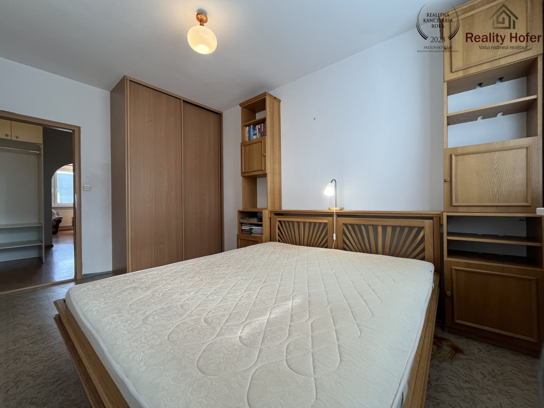 Prenajíma sa kompletne zariadený – posteľ, sedacia súprava, obývačková zostava, skrine v spálni a na chodbe, jedálenský stôl a stoličky, chladnička s mrazničkou, el. sporák, plynová varná doska. Okná plastové, zrekonštruované jadro.