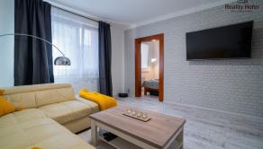 - stôl, stoličky, 3x posteľ, 3x vstavaná skriňa, sedačka, konferenčný stolík, TV,