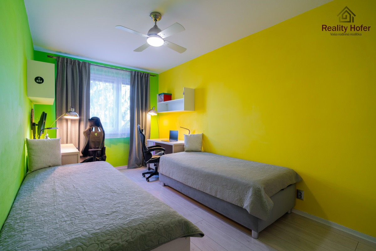 vstupná chodba, kuchyňa, obývačka, spálňa, detská izba, kúpeľňa so sprchovacím kútom, samostatné WC,