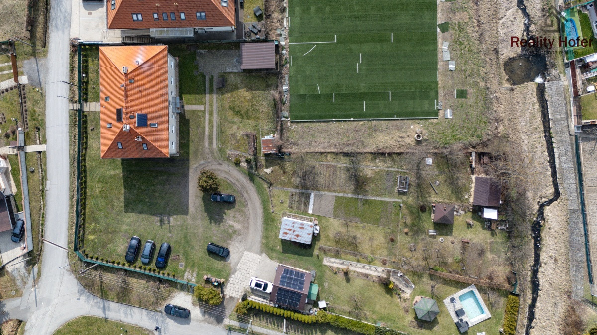 Pozemok o rozlohe 3365m2 je v podielovom spoluvlastníctve vo výške 1/4, pričom každý má vyčlenenú plochu/záhradku na súkromné užívanie - pestovanie, altánok, ... do výmery patrí aj dvor a trávnik a plocha na parkovanie vozidiel.