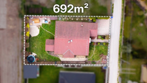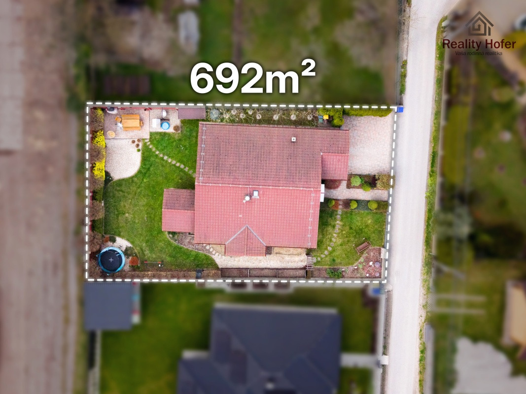 Pozemok je rovinatý o veľkosti 692 m2. Je kompletne oplotený. Záhrada je celý deň zaliata slnkom. Sú na nej vysadené mladé ovocné stromy, vyvýšené záhony, okrasné kríky, vonkajší krb s posedením, dreváreň. Pred garážou sú ešte dve parkovacie miesta.